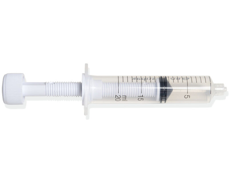 Questa siringa è stata appositamente studiata per l'iniezione del liquido, essendo dotata di un pistone a vite che permette un'iniezione regolare e costante del mezzo di contrasto.
